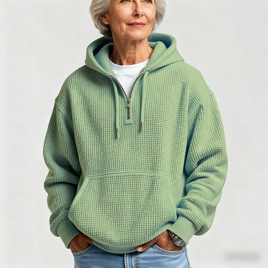 Women's Casual Solid Waffle Zipper Long Sleeve Hooded Thickened Sweatshirt